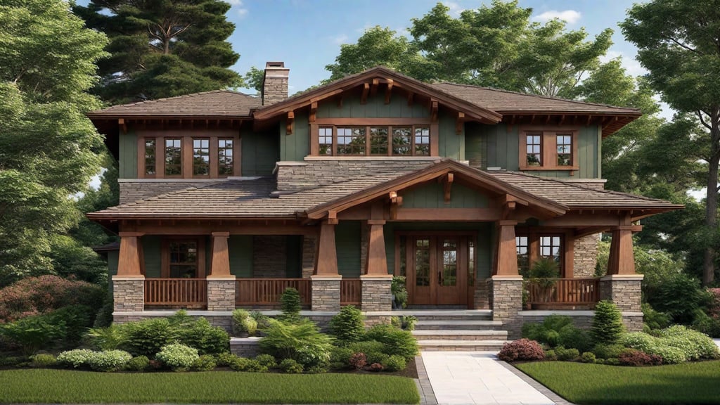 Notice the meticulous detailing, from the multi-paned windows to the intricate stonework along the foundation. This home embodies the essence of Craftsman Style Homes, balancing elegance and functionality seamlessly.