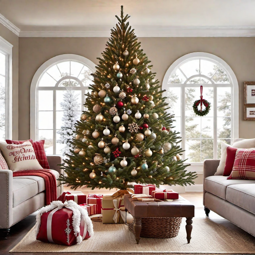 Step into the warmth of a cozy living room adorned with a beautifully decorated Christmas tree, each branch delicately holding onto vintage ornaments that exude nostalgia and charm. The glistening ornaments, many filled with memories from years gone by, bring a sense of Christmas Decor Inspiration to your home.