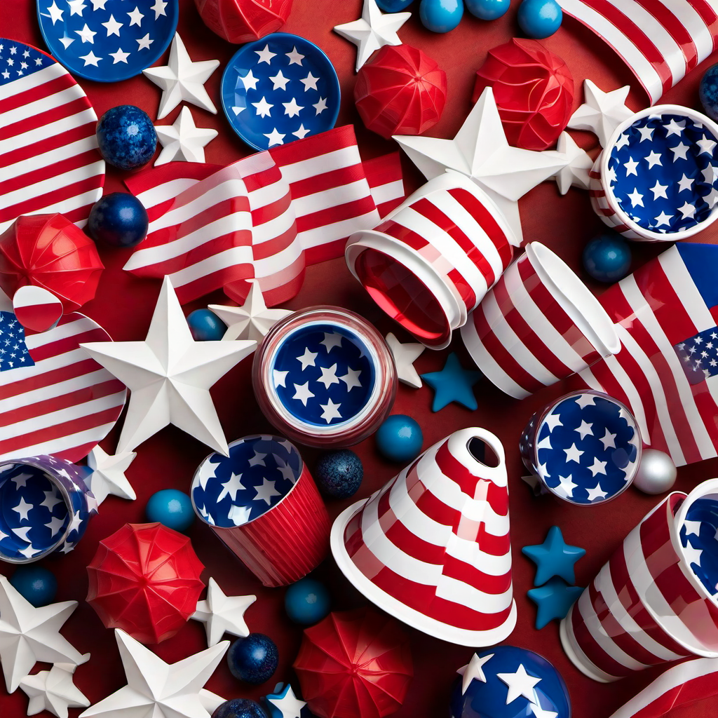Get ready to host the ultimate Fourth of July barbecue with this festive outdoor setup that screams patriotism and summer fun. The scene is adorned with classic red, white, and blue decorations, including American flag decor that adds a touch of nostalgia and pride to the ambiance.